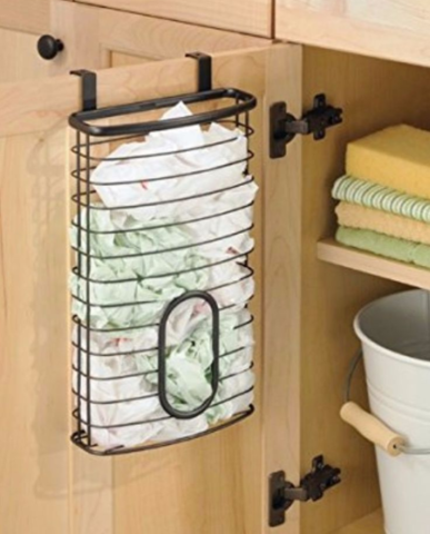 Μπορείτε να κρατήσετε τις τσάντες σε τραπεζάκια κουζίνας, να τις κρεμάσετε πίσω από πόρτες από το εσωτερικό ή το εξωτερικό, να τις καρφώσετε στα πλακίδια στον τοίχο ή να δημιουργήσετε χώρο στην επιφάνεια εργασίας της γωνίας της κουζίνας.