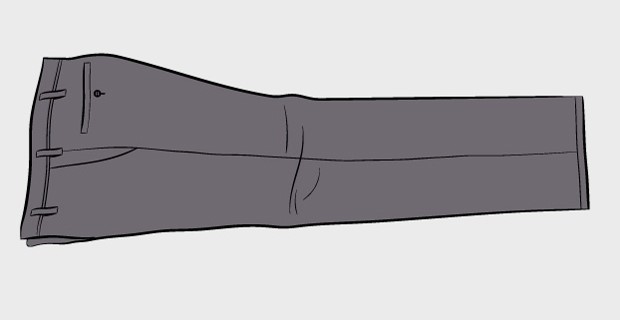 - Διπλώστε το παντελόνι στο μισό, το πόδι στο άλλο. Τυλίξτε τη ραφή του καβάλου προς εσάς.