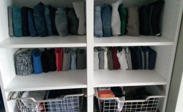 Υπάρχουν πολλές μέθοδοι για την οργάνωση της αποθήκευσης και του πτυσσόμενου τζιν, αλλά πρώτα πρέπει να αποκτήσετε τις πιο απλές. Ακόμα και μια άπειρη νοικοκυρά θα είναι σε θέση να καθαρίσει την ντουλάπα σε σύντομο χρονικό διάστημα.