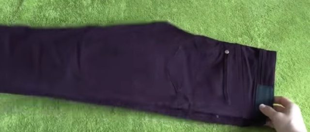 Τυλίξτε το παντελόνι σε ένα στενό ορθογώνιο - Το κάτω άκρο του παντελονιού είναι τοποθετημένο μέχρι το επίπεδο του γόνατος. Στη συνέχεια, το πράγμα πρέπει να τυλίγεται μέχρι τη μέση