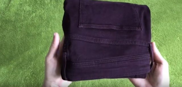 Είναι βολικό να αποθηκεύετε χειμερινά τζιν ή παντελόνια με αυτόν τον τρόπο, συσκευάζοντας συμπαγή ζεστά πουλόβερ και άλλα αντικείμενα μέσα.