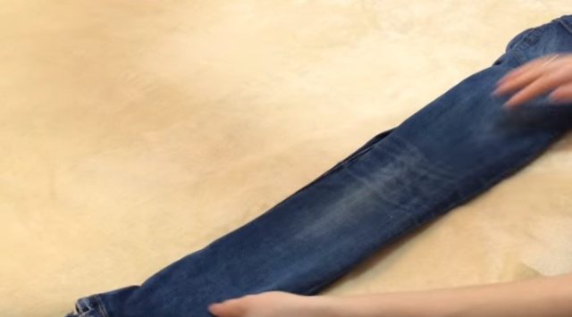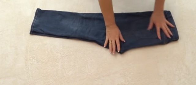 - Πρώτα πρέπει να σιδερώσετε τα τζιν και, στη συνέχεια, να τα κρυώσουν και να διπλώσουν συμπαγή το παντελόνι το ένα πάνω στο άλλο, έτσι ώστε όλες οι ραφές να συμπίπτουν.