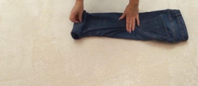 Ανεξάρτητα από το πώς διπλώνονται τα τζιν, οι πτυχές σχηματίζονται πάντα στις πτυχώσεις. Για να τα διπλώσετε γρήγορα και συμπαγή, ώστε να μην τσαλακώνουν, η παλιομοδίτικη μέθοδος θα βοηθήσει. Για να γίνει αυτό, τοποθετούνται με τον κλασικό τρόπο, αλλά τοποθετούνται ρολά από μαλακό ύφασμα ή πετσέτες. Θα εμποδίσουν το παντελόνι να τσαλακώνει και να σχηματίζει τσαλακώσεις. Συνήθως χρησιμοποιήθηκαν πετσέτες βάφλας για το σκοπό αυτό.