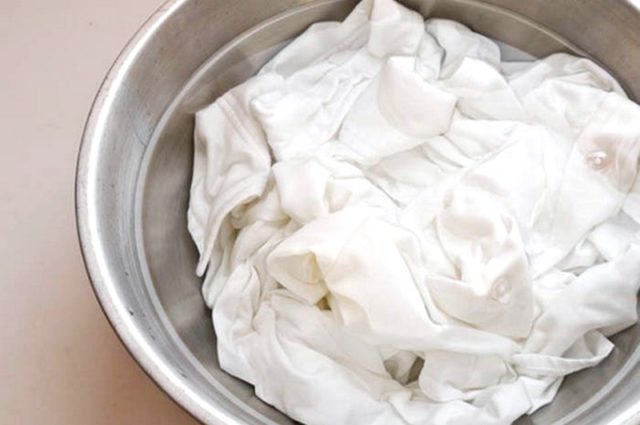 - βυθίστε τα ρούχα στο διάλυμα και αφήστε το να μουλιάσει για 3 ώρες.