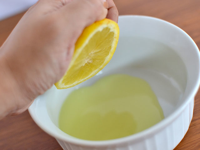 - πάρτε περίπου 2 μεγάλα κουτάλια χυμό από λεμόνια.
