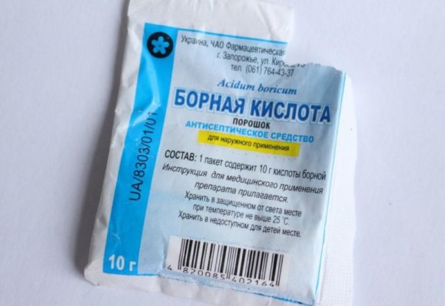 - ανακατεύετε σε νερό 2 μεγάλες κουταλιές σκόνης βορικού οξέος.