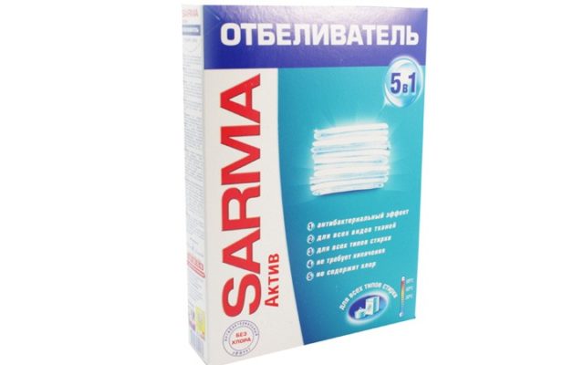 Τα λευκαντικά τύπου οξυγόνου, όπως το BOS Maximum, το Sarma Active και το Clean Home, δεν έχουν τόσο καλή επίδραση όσο τα προϊόντα που περιέχουν χλώριο. Αλλά τότε μπορούν να χρησιμοποιηθούν ακόμη και για ευαίσθητα υφάσματα.