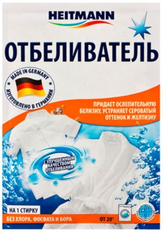 Το Belofor ή το Heliofor, καθώς και το λευκαντικό Heitmann, περιέχουν πρόσθετα φθορισμού στη σύνθεσή τους. Τέτοιες σκόνες χύνονται σε ένα πιάτο πλυντηρίου ή σε μια λεκάνη σύμφωνα με τις οδηγίες στη συσκευασία, χρησιμοποιήστε ζεστό νερό, όχι υψηλότερο από 40 ° C.