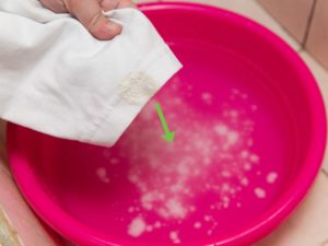 - Μετά από αυτό το διάστημα, ξεπλύνετε το ύφασμα με ζεστό νερό και μετά πλύνετε με τον συνηθισμένο τρόπο χρησιμοποιώντας οποιοδήποτε απορρυπαντικό.