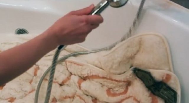 - Στη συνέχεια, ξαναγεμίστε το λουτρό με καθαρό ζεστό νερό και γυρίστε την κουβέρτα πολλές φορές. Δεν πρέπει να το τρίβετε και να το ανακατεύετε. Η αλλαγή νερού επαναλαμβάνεται αρκετές φορές έτσι ώστε τα σωματίδια απορρυπαντικού να αφαιρούνται εντελώς από τις ίνες.