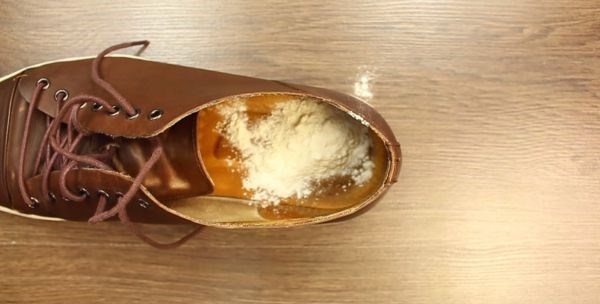 Δεν αρέσει σε όλους τη συγκεκριμένη μυρωδιά του φυσικού δέρματος. Αλεύρι, άμυλο, σκόνη σκόνης, κόκκοι καφέ θα βοηθήσουν να απαλλαγείτε γρήγορα από τη μυρωδιά των δερμάτινων υποδημάτων. Σε αυτήν την περίπτωση, μπορείτε να χρησιμοποιήσετε αρωματικά έλαια ή τρίψιμο με ένα ασθενές διάλυμα υπερμαγγανικού καλίου.