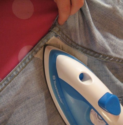 Για να γίνει αυτό, είναι απαραίτητο να ράψετε τις άκρες της οπής στην πίσω πλευρά με μια μικρή γραμμή. Στη συνέχεια, κόψτε μια λωρίδα κολλητικού υφάσματος, συνδέστε με τη ραφή και κολλήστε με ένα ζεστό σίδερο. Στο τέλος της διαδικασίας, κάντε μια ραφή από το εξωτερικό με νήματα που ράβουν τις ραφές στο προϊόν.