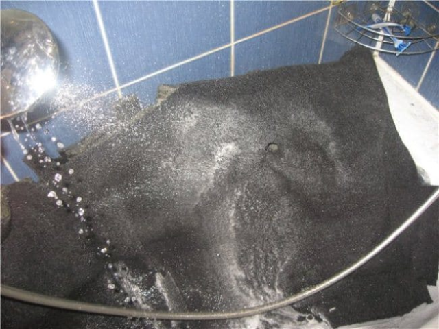 - Έτσι σταδιακά επεξεργαστείτε ολόκληρο το χαλί. Αφήστε το να στραγγίσει στο μπάνιο.