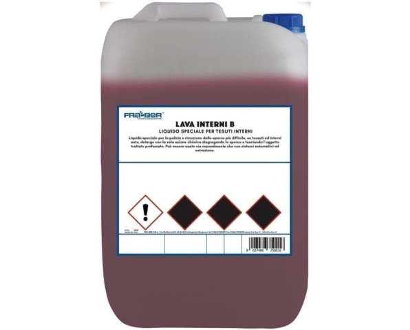 - Fra-Ber Lava Interni πωλείται σε συμπυκνωμένη μορφή, πρέπει να αραιώνεται με νερό πριν από τη χρήση. Χρησιμοποιείται για συνθετικές και φυσικές ίνες. Διεισδύει βαθιά στη βρωμιά και αφήνει μια ευχάριστη μυρωδιά στην επεξεργασμένη επιφάνεια.