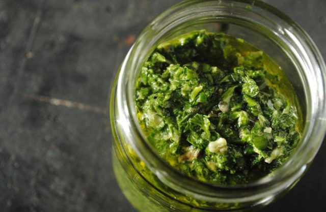 - αρκετά φρέσκα φύλλα του φυτού συνθλίβονται σε κατάσταση βαρύτητας.