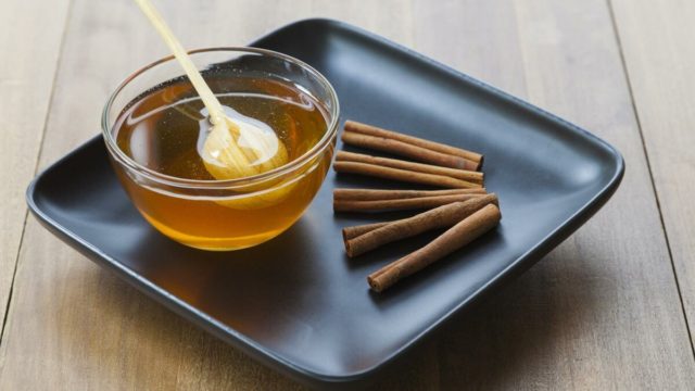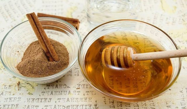 - μια μικρή κουταλιά μέλι συνδυάζεται με μια πρέζα κανέλα.