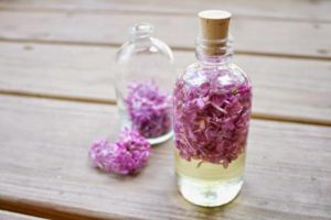Οι ιδιότητες του λιλά αιθέριου ελαίου χρησιμοποιούνται στην αρωματοθεραπεία. Το λεπτό και ελαφρύ άρωμα έχει μια ηρεμιστική επίδραση στο νευρικό σύστημα, εξαλείφει το άγχος και βοηθά στην αϋπνία. Το αιθέριο έλαιο σε ποσότητα δύο σταγονιδίων προστίθεται στις σπιτικές μάσκες μαλλιών και στα χαλαρωτικά λουτρά, εάν είναι επιθυμητό, μπορεί να θερμανθεί σε μια λάμπα αρώματος και να βελτιώσει το εσωτερικό κλίμα.