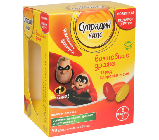 - Παιδιά Supradine μαγικά κουφέτα, 1,8 g, Νο. 90 με φυσικές γεύσεις.