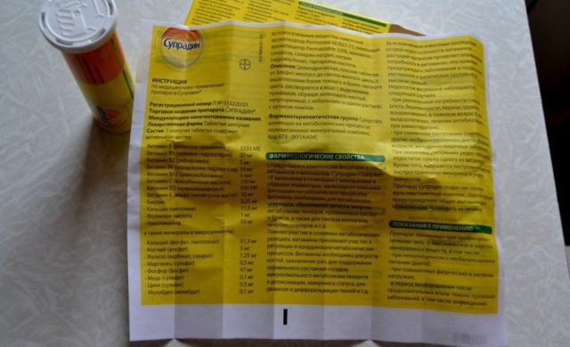 Στο κουτί από χαρτόνι με το φάρμακο υπάρχει ένα ένθετο φυλλάδιο που δίνει οδηγίες στους καταναλωτές λεπτομερώς για όλες τις κύριες πτυχές: σύνθεση, ενδείξεις χρήσης, αντενδείξεις και κανόνες για τη λήψη αναβράζων δισκίων Supradin.