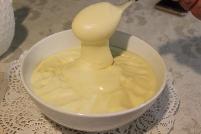 Το μείγμα θα πάρει σύντομα μια παχιά σύσταση και θα σταματήσει να κολλάει στο τηγάνι. Σε αυτό το στάδιο, το τυρί θεωρείται έτοιμο. Αφαιρείται από τη σόμπα, μεταφέρεται σε δοχείο και καλύπτεται με καπάκι. Αφού κρυώσουν φυσικά για άλλες 6 ώρες, τοποθετούνται στο ψυγείο και στη συνέχεια τρώγονται.