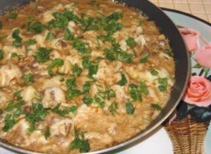 - Το τηγάνι καλύπτεται με καπάκι και στη συνέχεια το πιάτο μαγειρεύεται για 5 λεπτά μέχρι να ψηθεί.