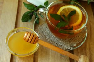 - Διαλύστε το μέλι και βάλτε μια φέτα λεμονιού.