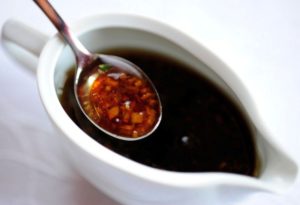 - ανακατέψτε 2 κουταλάκια του γλυκού της σάλτσας με την ίδια ποσότητα φυτικού ελαίου.
