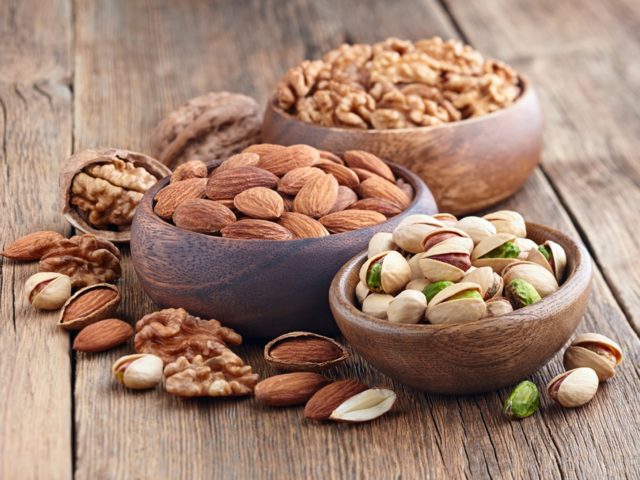 Τα αμύγδαλα έχουν αντίκτυπο στη διαδικασία αποκατάστασης των μυών. Το προϊόν περιέχει υγιή λίπη (Ωμέγα-3, Ωμέγα-6). Τα καρύδια της Βραζιλίας ενισχύουν την τεστοστερόνη. Διακρίνονται από την παρουσία μαγνησίου, σεληνίου και ψευδαργύρου. Τα καρύδια είναι επίσης πηγή θρεπτικών συστατικών.