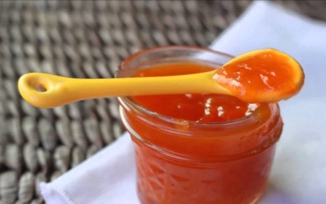 Χρειάζονται περίπου δύο λεπτά για να διατηρηθεί η γλυκιά μάζα σε αυτή τη θερμοκρασία, ανακατεύοντας συνεχώς. Ταυτόχρονα, είναι επιθυμητό να μην βράζει η λιχουδιά. Όταν οι κρύσταλλοι ζάχαρης διαλύονται εντελώς, η μαρμελάδα απομακρύνεται από τη θερμότητα και συσκευάζεται σε αποστειρωμένα δοχεία με σφραγισμένα καπάκια.