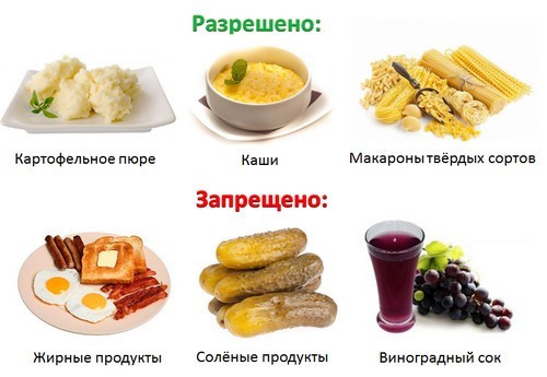 Τη δεύτερη μέρα, το μενού περιλαμβάνει σταδιακά σούπες, ζελέ, ζωμό τριαντάφυλλου και σουφλέ κρέατος. Για 3-4 ημέρες, επιτρέπεται η κατανάλωση λευκών κροτίδων ή χθεσινού ψωμιού, πουρέ λαχανικών, κεφτεδάκια, κοτολέτες στον ατμό, ζωμός.