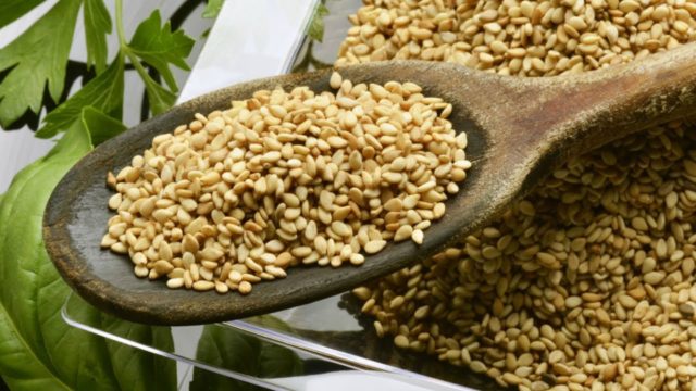 Ένα άλλο τρόφιμο με υψηλή περιεκτικότητα σε ψευδάργυρο και σελήνιο είναι οι σπόροι σουσαμιού. Ο πολιτισμός είναι ένα ετήσιο βότανο. Διανέμεται στην Ασία, την Κίνα, τη Βιρμανία και την Ινδία. Θεωρείται η πρώτη καλλιέργεια ελαιούχων σπόρων στον πλανήτη. Χρησιμοποιείται για ιατρικούς και μαγειρικούς σκοπούς. Εκτός από το σελήνιο και τον ψευδάργυρο, το σουσάμι περιέχει μολυβδαίνιο, μαγγάνιο, σίδηρο, φώσφορο.