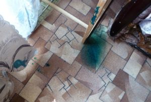 - Vinegar is poured over the painted area of the flooring so that it completely soaks the fragment of pollution.