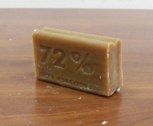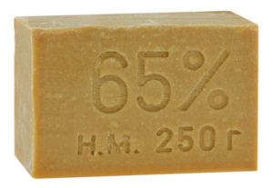 - Usually, the product is sold in transparent packaging, and a marking is embossed right on the surface of the soap, indicating the percentage of fatty acids - 72%, 70% or 65%. The most valuable is soap with 72% fat content.