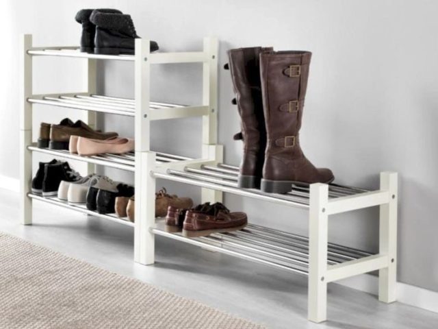 These racks are usually used for displaying goods in supermarkets, but they are also ideal for storing shoes, especially when it comes to lightweight shoes, ballet flats or sneakers. An added benefit of the rack is that vertical storage of the shoe allows maximum space savings. The disadvantage of the device can be considered an open structure; from time to time, shoes will have to be wiped from dust.