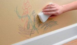 - Dishwashing gel... Add a little dishwashing gel to a small container of water, stir the product until foam is obtained, and then treat the dirt with a brush, cotton pad or sponge. After a few minutes, the trace of the pen should fade, and then completely disappear, when the wall becomes clean, you will need to wipe it with a cloth dipped in plain water.