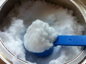 - in a small container, mix a large spoonful of hydrochloric acid and a small spoonful of salt;