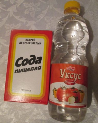 - Mix in 1 liter of water 200 g of caustic soda and the same amount of acetic acid.