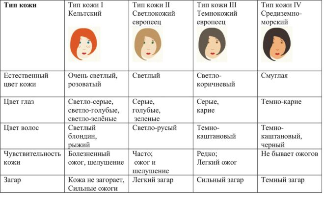 The most common type. The skin is a little dark, tan lays down easily, sometimes it burns. Hair color is light brown, chestnut or dark blond. With this type, the duration of artificial tanning procedures starts from 3-4 minutes and gradually increases to 10-11.