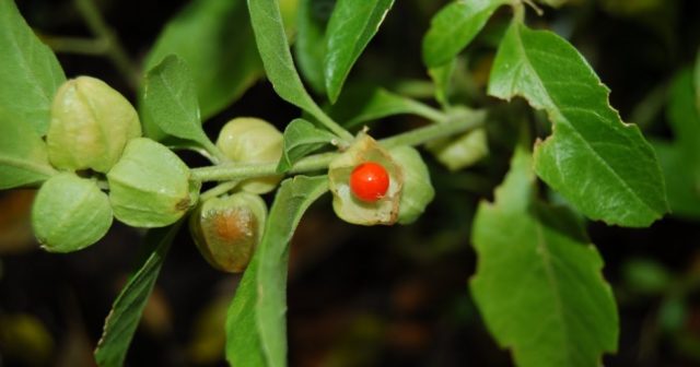 Ashwagandha is an adaptogen plant belonging to the Solanaceae family. It is used by Ayurvedic healers as a rasayana. Other names for ashwagandha are poisonous gooseberry and Indian ginseng. The plant is an upright bush, which reaches a height of 1 m. It has elongated roots and fleshy leaves. The stems are covered with fluffy villi. The flowering process of a plant is accompanied by the appearance of small flowers on it, the shade of which varies from yellow to green. Ashwagandha fruits are red berries.