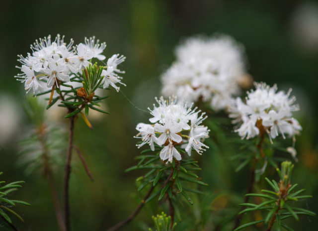 Marsh ledum is widespread in everyday life. In dried form, it is laid out in barns and basements to scare off mice. Fumigation with wild rosemary helps to get rid of fleas and bedbugs. Placing dried branches on the shelves of the cabinet saves you from moths. Before going to the forest, they are rubbed with a medicinal plant to scare away mosquitoes and other insects.