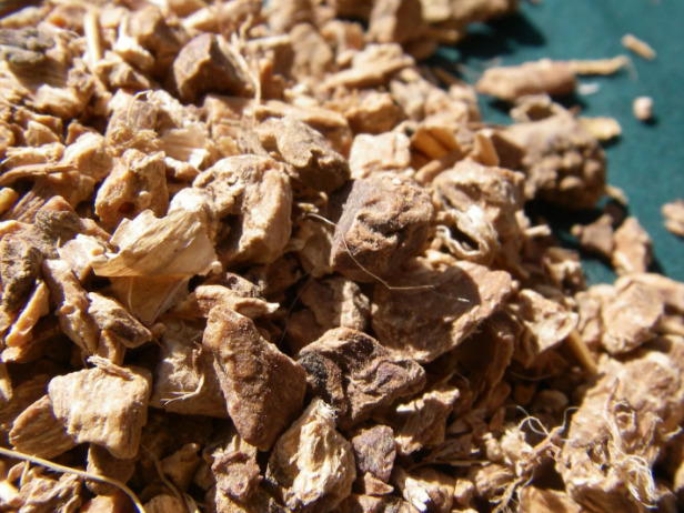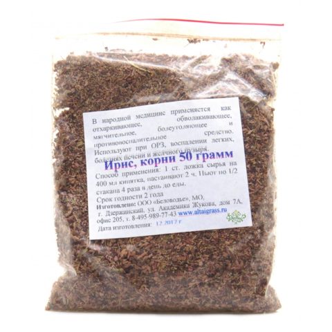 The healing agent is made from dried roots. Raw iris is ground with a coffee grinder.