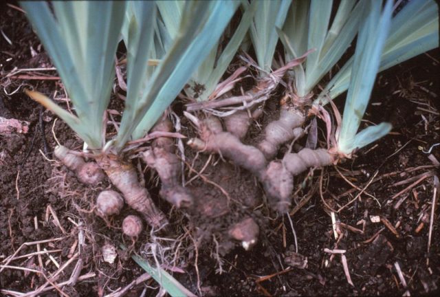A perennial can reach a height of 90 cm. On the flattened curly stems there are up to 10-14 flowers. During evolutionary development, the external characteristics of the plant have changed. Gradually, the stem turned into a rhizome, which has a diameter of 3 cm.