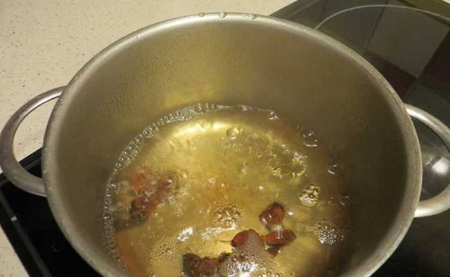 - Pour raw materials with 200 ml of boiling water and put on the stove.