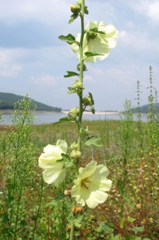 In early or mid-summer, the plant produces large bell-shaped flowers, most often with a yellow color. The buds are collected in spike-shaped inflorescences. During the period of decorativeness, the stock-rose attracts a lot of attention, since its stem is colored with bright colors along its entire length.