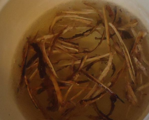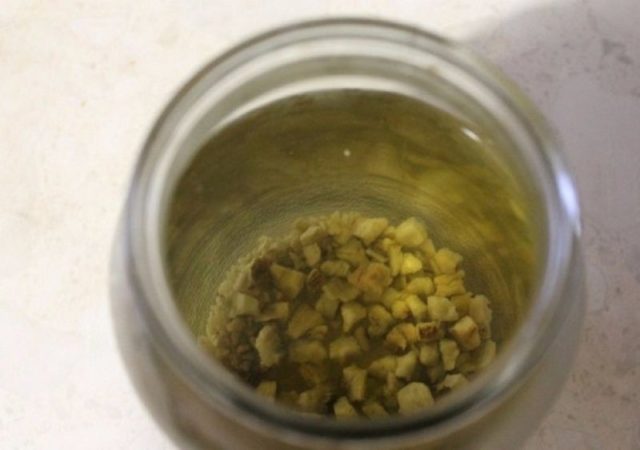 - the dry root of the plant is finely chopped in the volume of two large spoons;