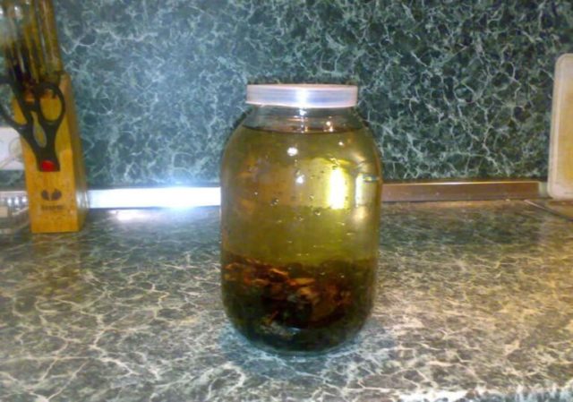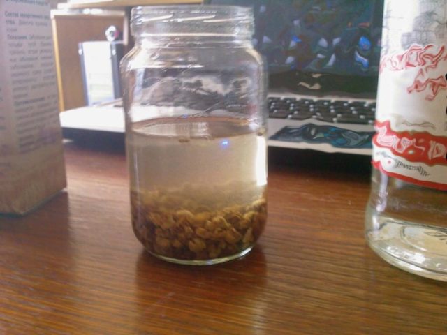 To prepare a medicine, it is allowed to use moonshine. It is desirable that it be approximately equal in strength to vodka - 40-50 degrees. Traditional medicine offers the following recipe: