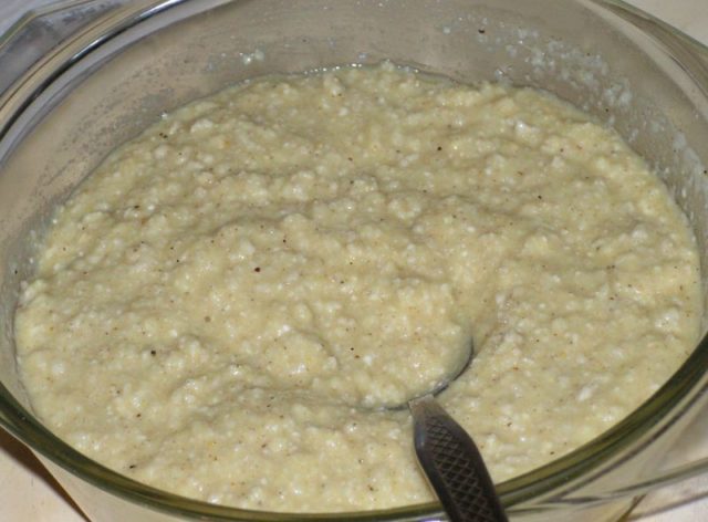 - a large spoonful of plant grains is poured with warm water and left for five hours to swell;