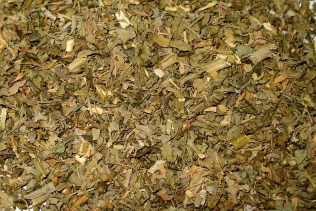 - 250 g of dry plant leaves are mixed with an equal amount of burdock;