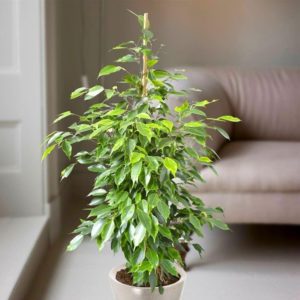 The stem of an adult plant is lignified. But young shoots are flexible. For indoor ficuses planted nearby, you can intertwine the stems, as in the photo below. The shape of the bush must be shaped, trimmed so that the ficus does not grow one-sided.