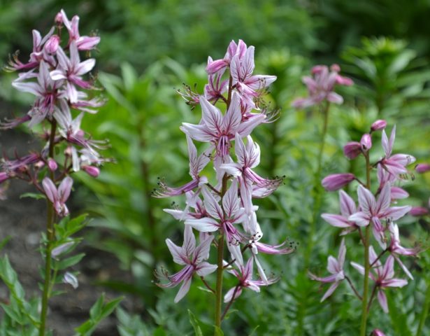 Blossoming of the burning bush is observed in June and July. During this period, the perennial has pronounced decorative qualities. The high racemose inflorescences are 15 cm long. They are pink or white in color and the presence of burgundy veins.